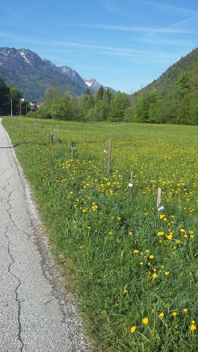 Our first assigned area for planting was along the newly created connecting cycle path between Bad Ischl and the Attersee in Weißenbachtal and along the brine pipeline path from Mitterweißenbach to Bad Ischl. Sparrow, Schledorn, Pfaffenhütchen, wild cherries and honeysuckles were planted here.